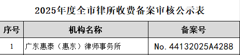 2025年度全市律所收费备案审核公示表(10月份)