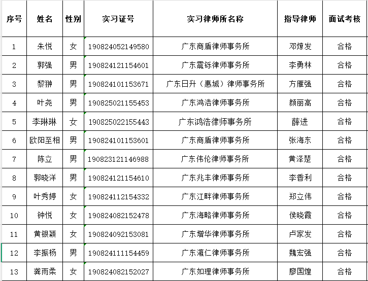 根据《惠州市律师协会申请律师执业人员实习管理及考核实施细则》规定,现将2026年4月实习律师考核结果公示,接受监督。考核结果公示期为七日,公示期间未有异议或异议不成立的,考核结果发生效力.