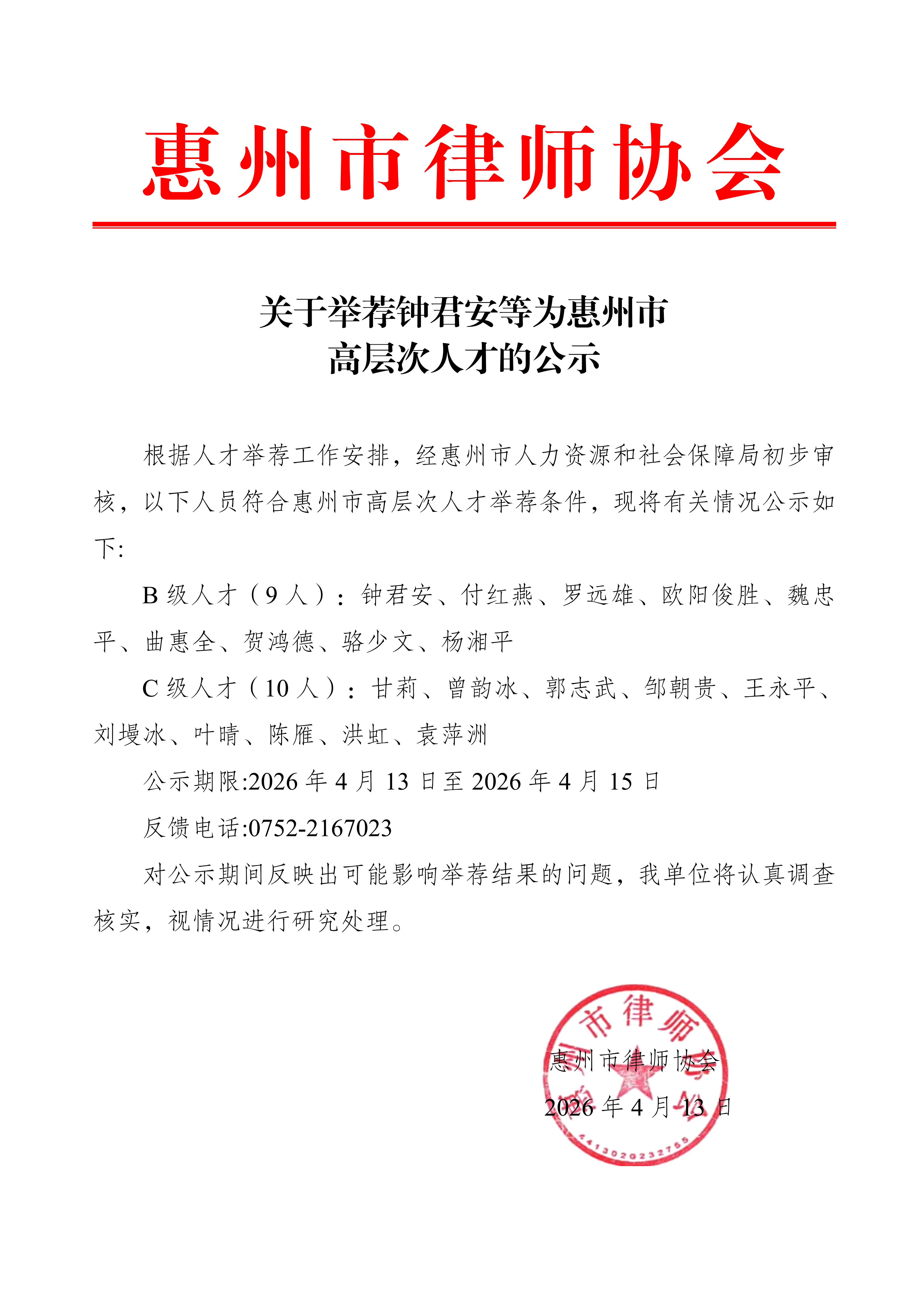 关于举荐钟君安等为惠州市高层次人才的公示.pdf